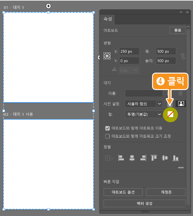 대지(아트보드) 칠 색상 바꾸기