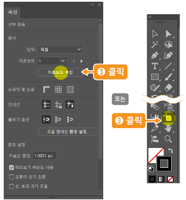 - [아트보드 편집] 클릭