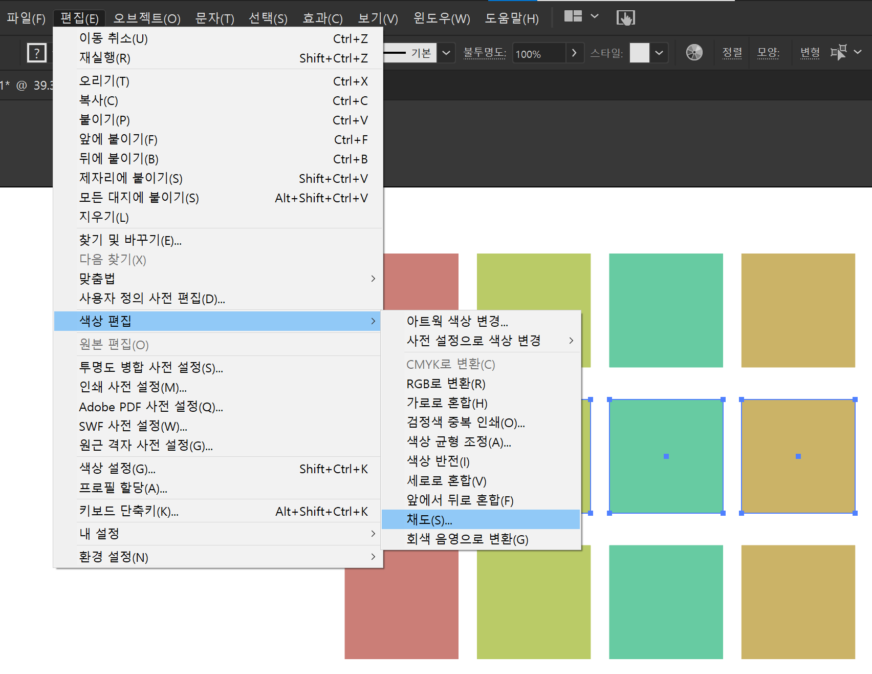 - 바꿀 개체 선택 - [편집]-[색상편집]-[채도]