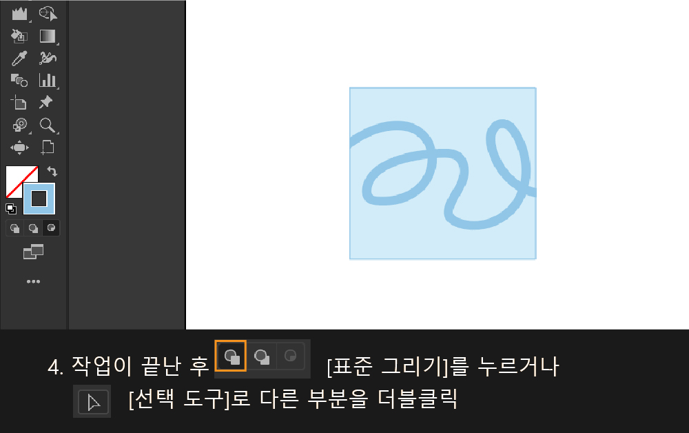 [선택 도구]로 개체 이 외에 부분을 더블클릭하면 표준 상태가 됩니다.