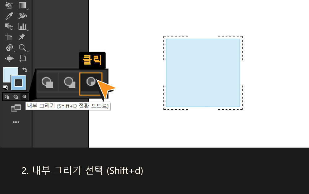 - 내부 그리기 선택(Shift+d) (*내부 그리기 상태 확인)